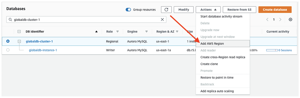 It’s also easy to set up. On the Amazon RDS console, select your Aurora cluster. On the Actions menu, choose Add AWS Region.