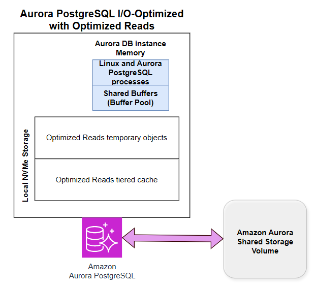 Aurora Optimized Reads-enabled tiered cache addresses these issues by reducing IO, storage network, and CPU utilization through larger local caching, providing sub-millisecond read latency and improving p99 consistency.