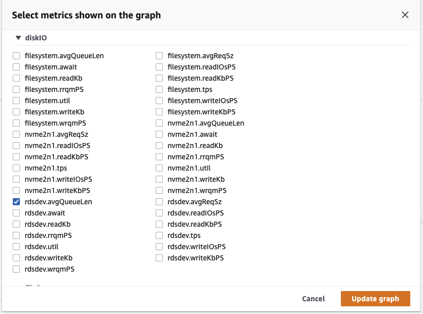 rdsdev.avgQueueLenmetric from the diskIO section. - Choose Update graph.