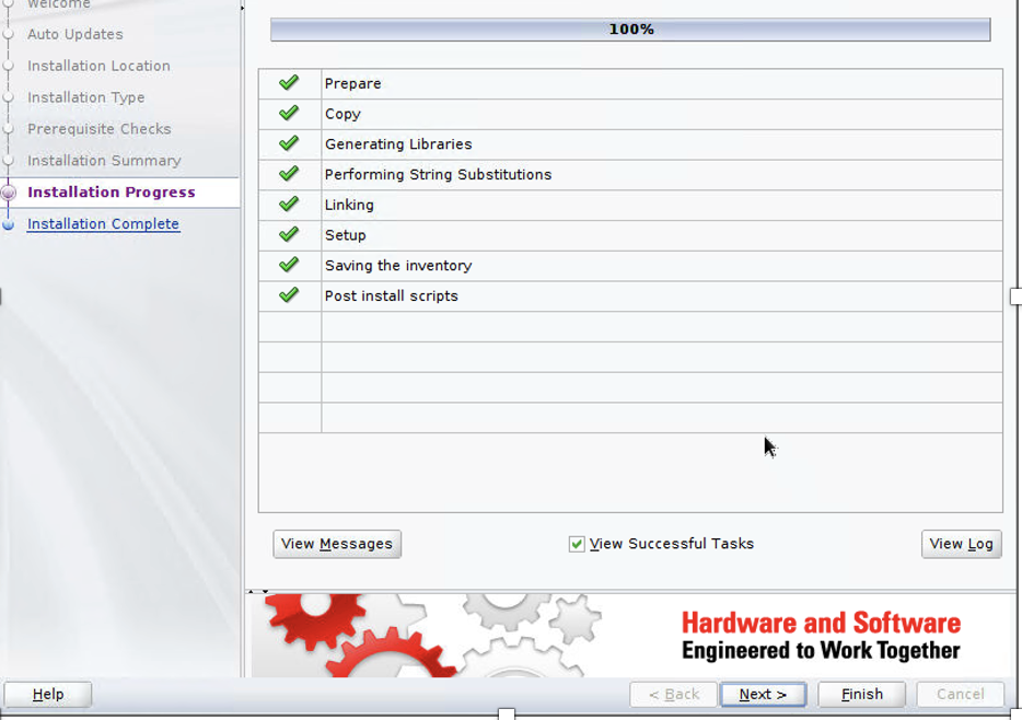 - On the Installation Progress page, ensure that all steps are complete and choose Next.
