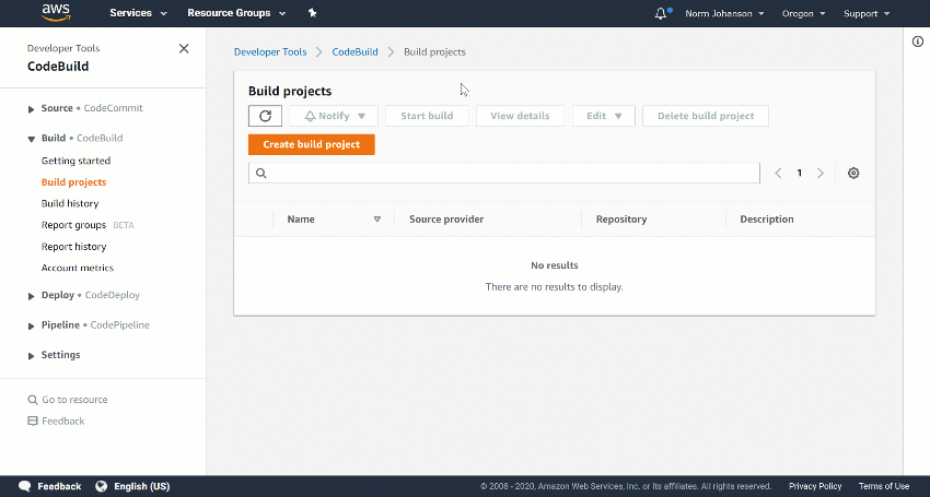 - Sign in to the AWS Management Console and navigate to CodeBuild