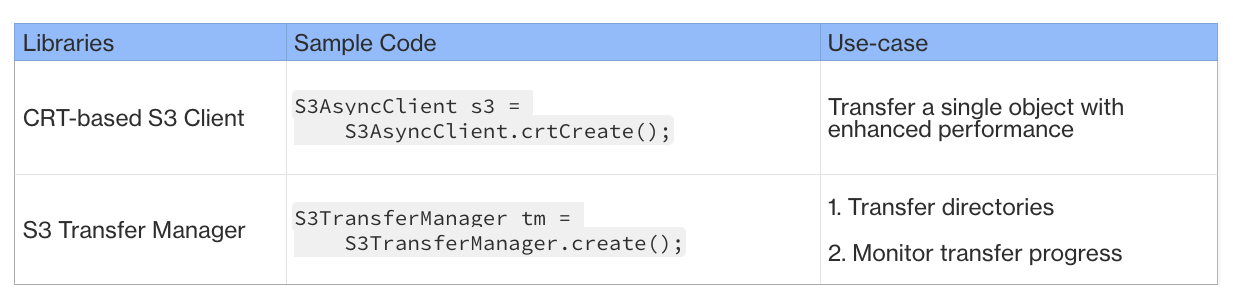 Introducing CRT-based S3 Client and the S3 Transfer Manager in the AWS SDK for Java 2.x