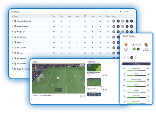 LaLiga seamlessly integrated HUDstats APIs to access stats and enrich content on its website as well. All information is aggregated in one place for the season. Casters can now easily access teams’ and players’ performance data throughout the season, creating a more engaging narrative. Teams have their own dedicated page with metrics and performance stats, offering greater visibility into their season achievements. They can share video highlights from the dashboard on social media channels, giving fans a front-row seat to their season-long journey.