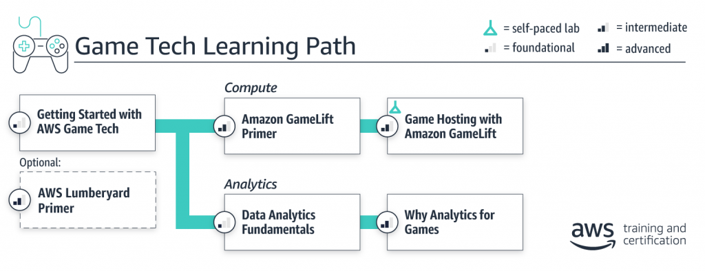 AWS Training and Certification is excited to announce a new Game Tech learning path that organizes all Game Tech courses into one place. Whether you’re a solutions architect, game developer, data engineer, or data analyst, this learning path provides structured guidance on where to begin your training and next steps to gain expertise. As we develop new training content, we’ll keep this learning path updated, so you’ll always know where to find the latest training. Built by the experts at AWS, our digital training can help you progress from learning to doing.