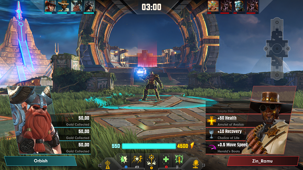 In the following example from Amazon Game Studios’ upcoming game Breakaway, you can see that the streamer has created an overlay showing stats from the two leaders in the match. Metastream lets him dynamically highlight the leaders’ highest stat areas, such as gold collected, Kills/Deaths/Assists, and damage dealt, and even pulls character art of the game and displays it dynamically. The streamer also displays each player’s position in the standings relative to the rest of their team: