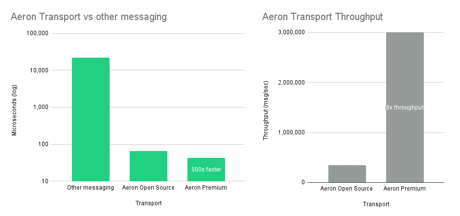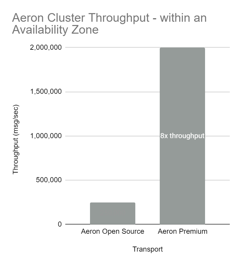 - With Aeron Premium, throughput leapt eight-fold, to over 3,000,000 messages/second.