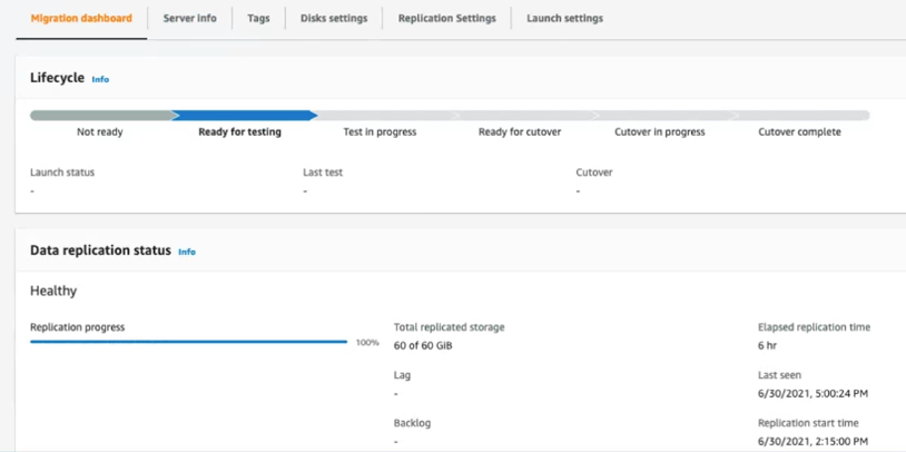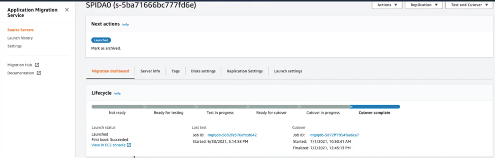 Figure 3: Application Migration Service replication completion