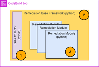 - Remediation module: This component contains the function that changes the resource. configuration, which will be run in the account to resolve the identified security issues. The configuration changes made are specifically tailored to the controls they remediate. There can be multiple modules within the framework defined.