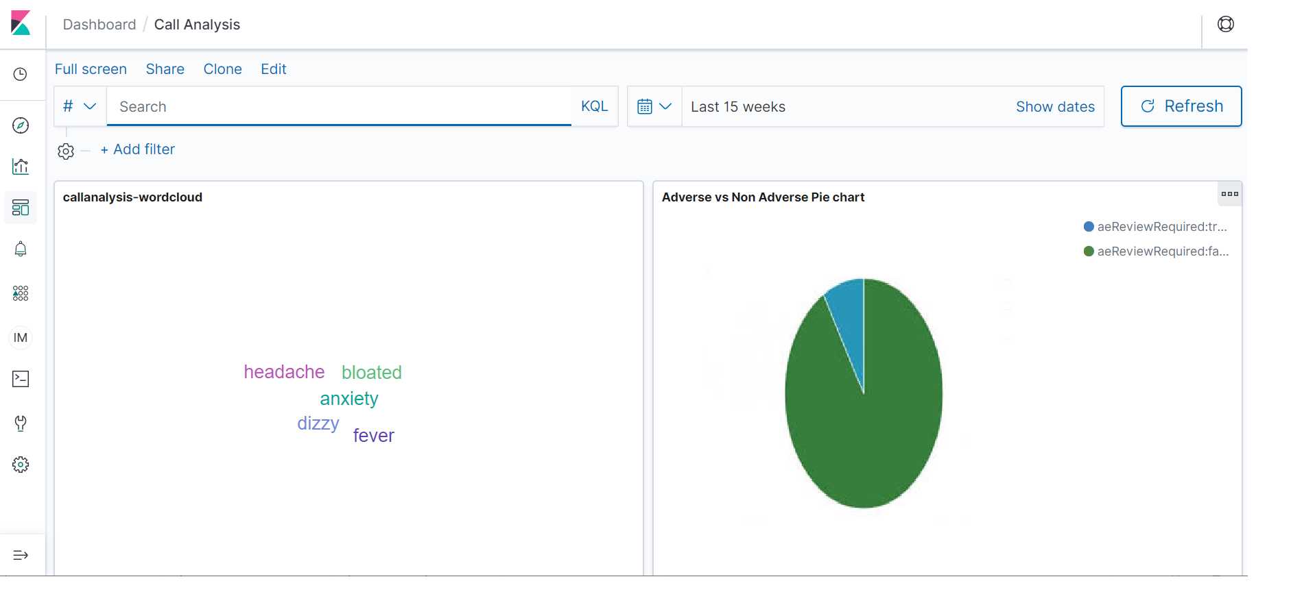 - The pie chart represents the count of adverse events Vs non adverse events calls.