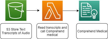 - The transcribed text gets further processed to extract relevant medical information using Amazon Comprehend Medical.