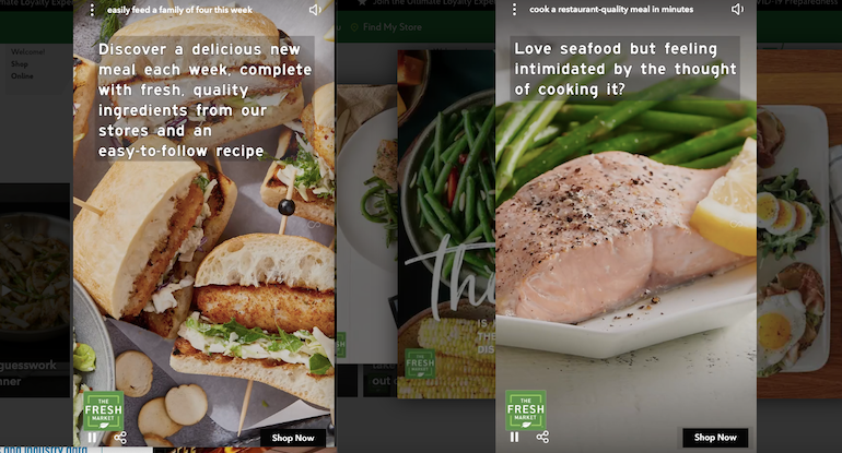 The Fresh Market took two approaches, depending on how guests were shopping. The first approach was to use short-form shoppable videos embedded on its ecommerce website. The second approach was to engage in full livestream events that could be shoppable.