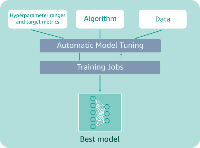 Fig. 2: SageMaker HPO takes the parameters, model data, and training data as input to automatically tune the parameters and start training jobs, allowing efficient discovery of the best model.