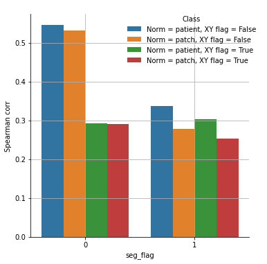 Fig. 5b: HPO performance as a function of patient vs. patch normalization. Patch normalization with no segmentation or x-y input channels is slightly better than the patient normalization.