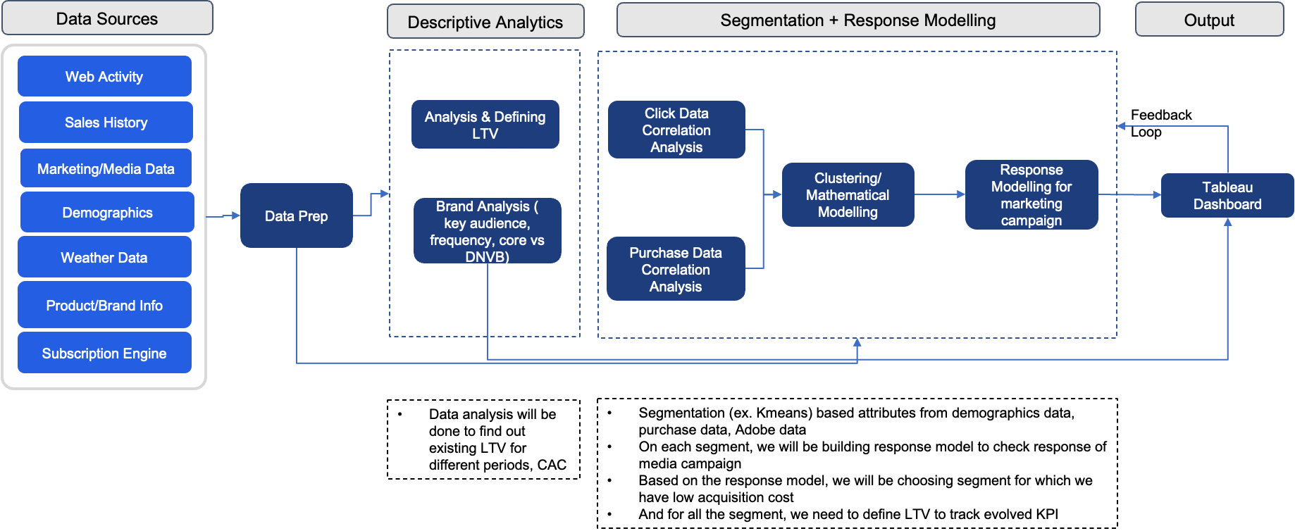 CPGs use POS data points to personalize offerings for each consumer segment. They achieve this by profiling consumers based on their preferences, glance views on DTC and ecommerce channels, and existing purchases. In the same way, Sigmoid helped a large garden supply company predict customer churn and identify customer segments. Figure 3 shows the logical representation of the solution.