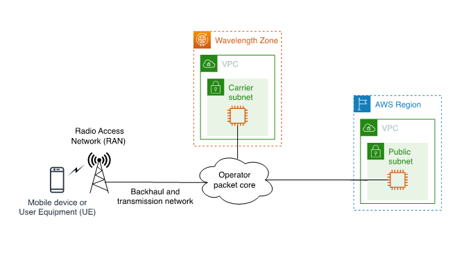 There are many factors that can affect the round-trip latency between the app on the UE and its AWS resources in the Region or Wavelength Zone. Some examples of these are: the UE’s physical location, the RAN and backhaul network design, the mobile core site locations, the packet core technology (4G or 5G), and the locations of the AZs that make up the closest Region.