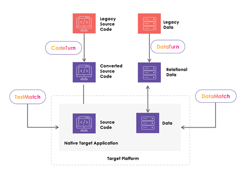 FastTrack builds on CodeTurn tools for source-to-source translation and DataTurn suite for data conversion, both optimized for AWS environments. Two automation testing tools are used to verify and prove the correctness of the performed code transformation and data conversion: TestMatch for online/MQ interface testing and DataMatch for batch application verification, with seamless integration to AWS services.
