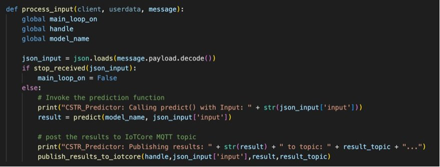 The following is a snippet of the inferencing function’s main loop, which is triggered whenever input arrives for inferencing. The main loop invokes the compiled ML model’s predict() method via gRPC from Amazon SageMaker Edge Manager. The inference result is published to AWS IoT Core message queuing telemetry transport (MQTT) service for review.