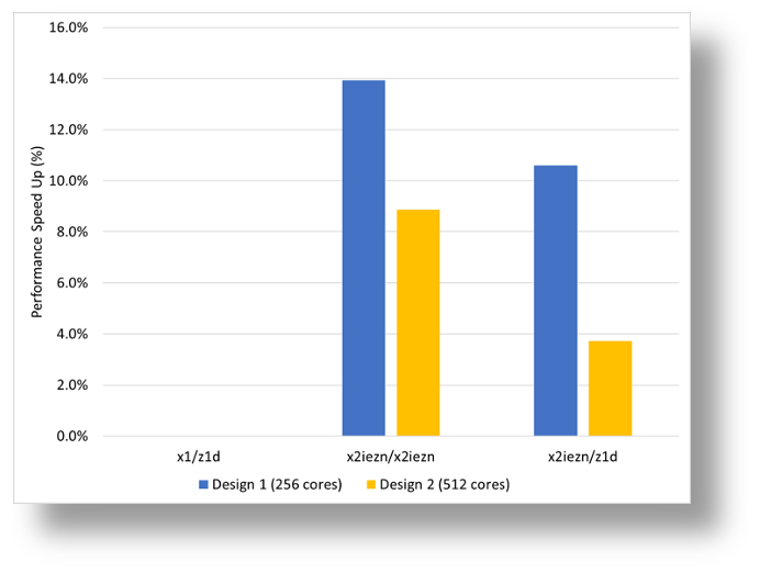 Customers who run physical verification workloads can now use the new Amazon EC2 X2iezn instances from AWS to obtain up to a 14% faster performance compared to the X1 platform. Using a combination of Amazon EC2 X2iezn and z1d instances with Siemens EDA Calibre nmDRC results in significant performance improvement and resource savings.
