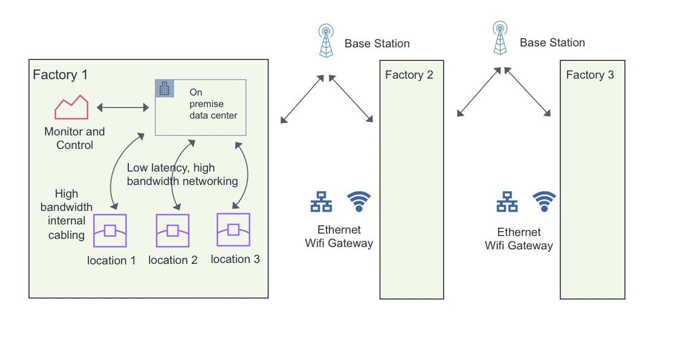 The current Smart Factory solutions are comprised of many elements like sensors, vision systems, CCTV cameras, Thermal sensors, 3D rendering systems, satellite images, and hand held smart devices. These are high-speed streaming devices generating large amount of data requiring high bandwidth, low latency network and compute to handle this data. The data from these sources are quickly analyzed by collaborating AI systems, which either sends back instructions to the machines on the floor or enables analytics that helps humans to make informed decisions. Typically, this data is processed on premises and the information is transmitted over wireless technologies to enable the interconnected factories work in sync with each other and build a collaborative system.