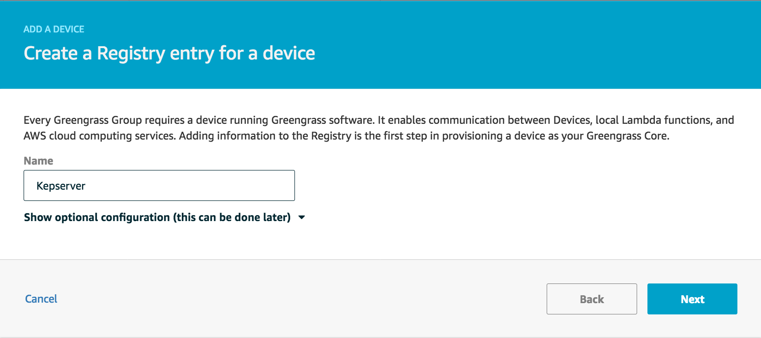 Now we add the KEPServerEx device to the AWS IoT Greengrass group.