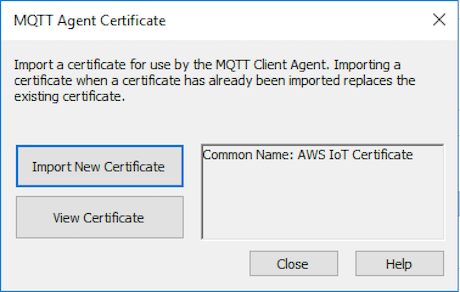 - On MQTT Agent Certificate, choose Import New Certificate.