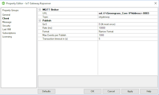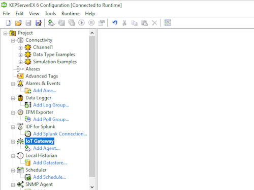 Now we configure the MQTT Agent and the IoT gateway to connect Kepware to the Greengrass core device.