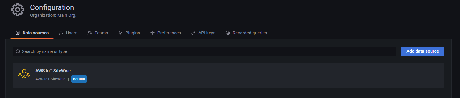 - In your Grafana workspace Navigate to Configuration→ Data Sources