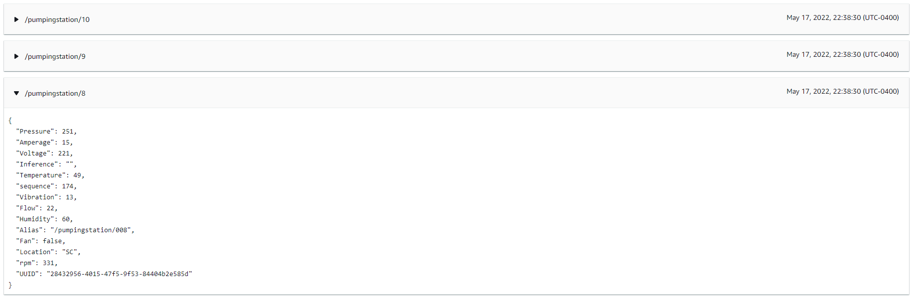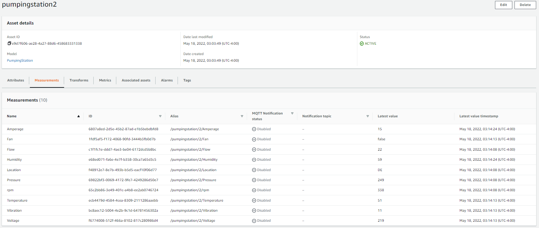 - Select one of the Pumping Stations and go to measurements. Now confirm that your data is arriving in AWS IoT SiteWise and being updated periodically.