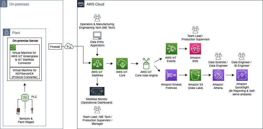 After collaborating with AWS Professional Services for the pilot solution, we also quickly realized the potential of unlimited analytics opportunities for data-driven insights. We could do this by connecting related enterprise data from systems such as Enterprise Resource Planning (ERP) and Manufacturing Execution System (MES), with the operational data from manufacturing.