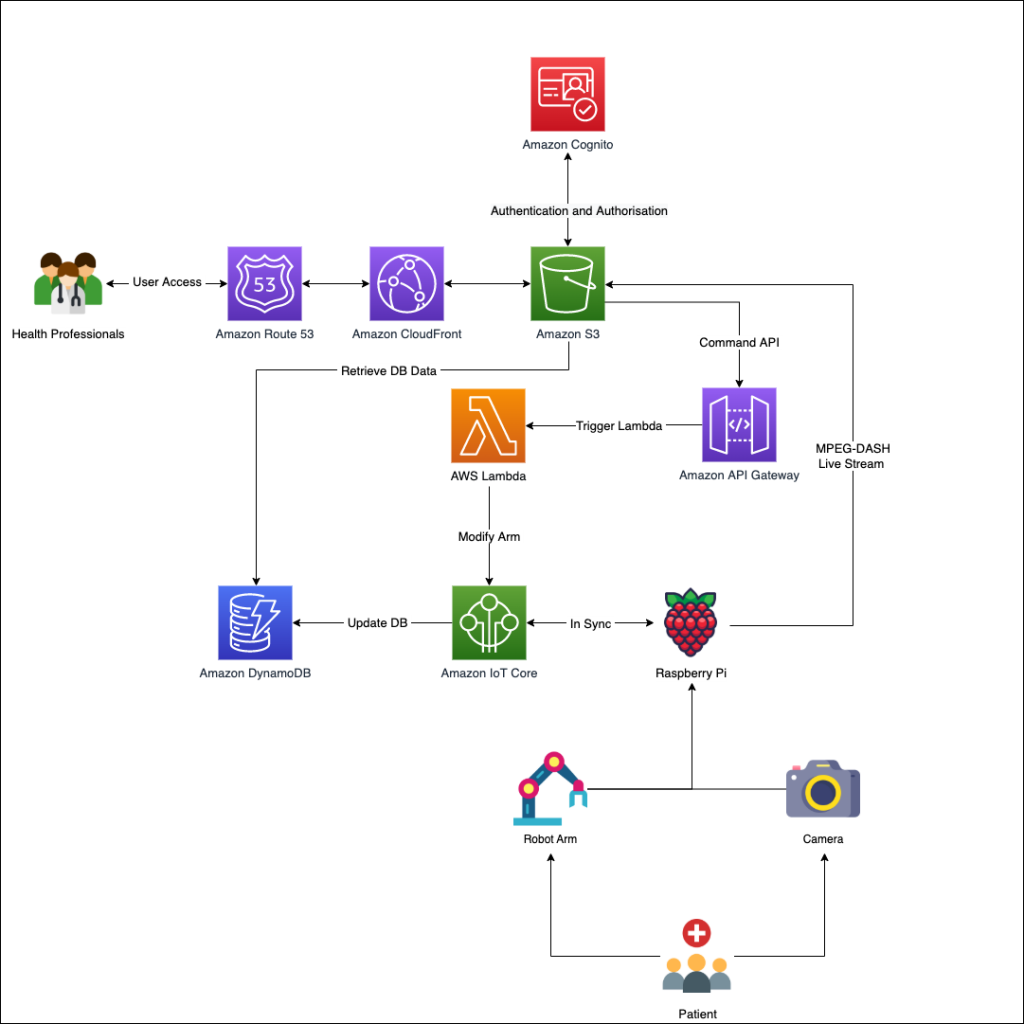 A fast retrieval database is critical for the rehabilitation experts to access the data that patients generate during rehabilitation. Amazon DynamoDB provides fast, flexible NoSQL database services at single-digit millisecond performance at any scale. Rehabilitation experts can monitor and communicate with a patient from anywhere in the world using a website hosted on S3 and Amazon CloudFront for low latency content delivery.
