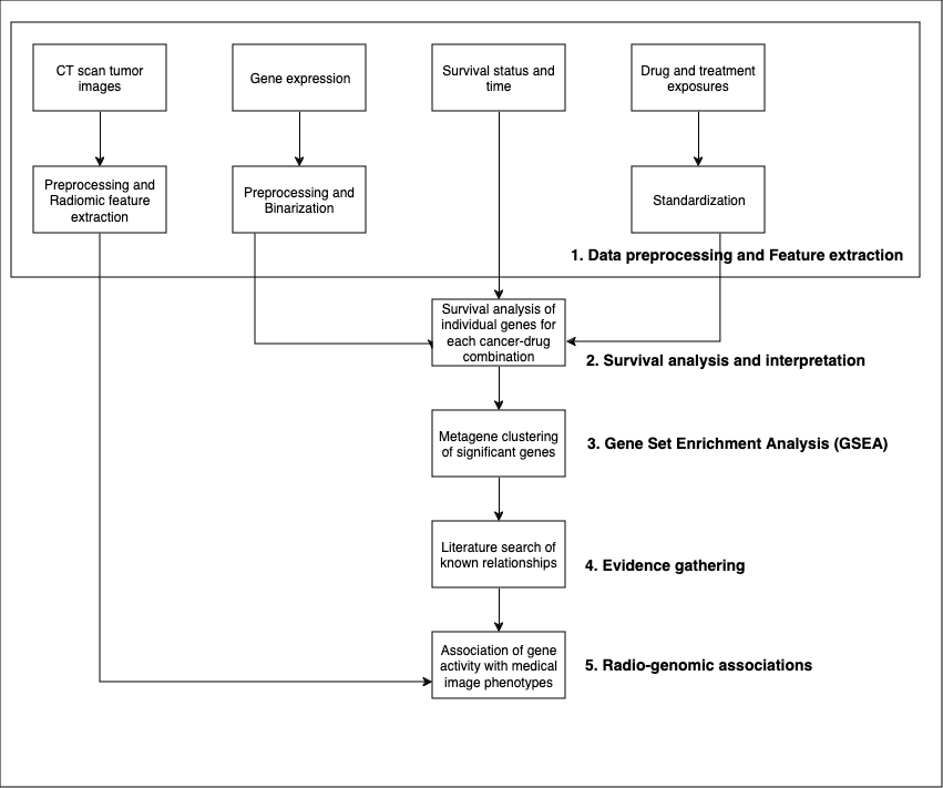 - Preprocess programmatically a diverse set of input data, structured and unstructured, and extract biomarkers (radiomic/genomic/clinical and others).