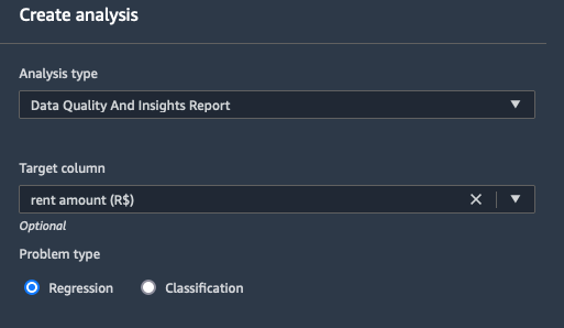 rent amount (R$). - For Problem type, select Regression.