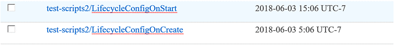When the notebook instance is created or started, the results of running the lifecycle config are captured in an Amazon CloudWatch Logs log group called /aws/sagemaker/NotebookInstances. This log group has a stream for <notebook-instance-name>/LifecycleConfigOnCreate script results, and another for <notebook-instance-name>/LifeCycleConfigOnStart. Here you see errors in the lifecycle script executions.