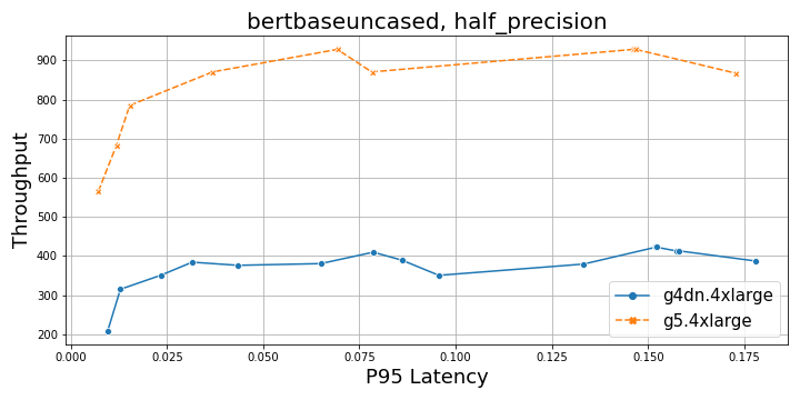 The purpose of this post is to showcase the performance benefits of G5 instances for large-scale ML inference workloads. We do this by comparing the price-performance (measured as $ per million inferences) for NLP and CV models with G4dn instances. We start by describing our benchmarking approach and then present throughput vs. latency curves across batch sizes and data type precision. In comparison to G4dn instances, we find that G5 instances deliver consistently lower cost per million inferences for both full precision and mixed precision modes for the NLP and CV models while achieving higher throughput and lower latency.