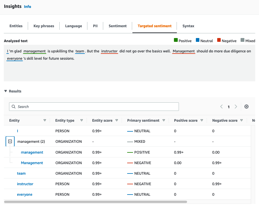 To learn more about Targeted Sentiment for Amazon Comprehend, refer to Targeted sentiment.
