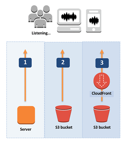 - When you use S3, all audio files are stored and broadcast from Amazon S3.