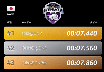 She came to the AWS Summit as part of a team created at her company DNP (Dai Nippon Printing, a Japanese printing company operating in areas such as Information Communications, Lifestyles and Industrial Supplies and, Electronics). 28 of them placed on the leaderboard, with the top 3 all being from the team – 2 of them beating the previous world record (7.62 seconds) set just the week before at Amazon re:MARS.