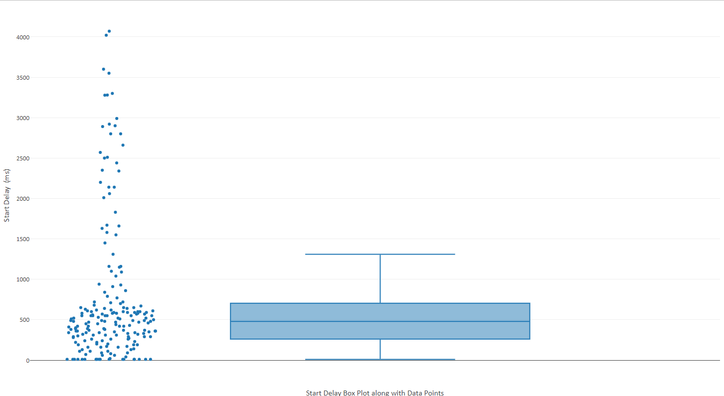 Knowing the start delays of every sentence, we can apply statistical analysis and figure out the significance of every delay in comparison to the total population of delays. In our context, significant delays are those that are over the population’s typical duration. The following graph shows an example.