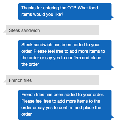 Bot: Thanks for entering the OTP. We’ve added pizza to your order. Would you like anything else?
