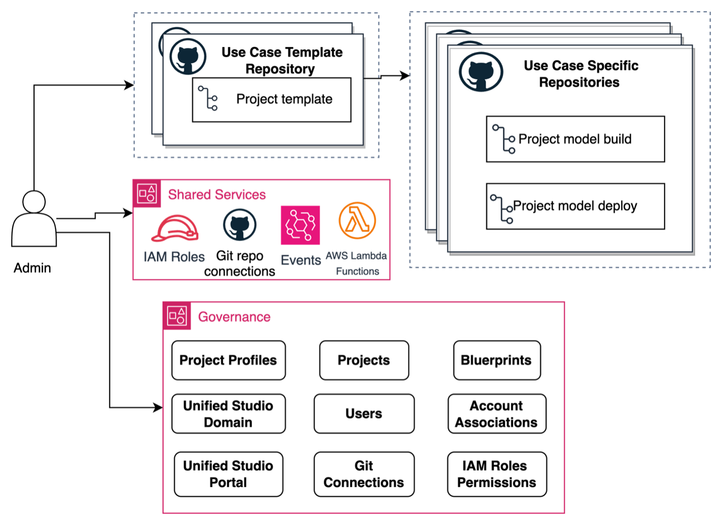 In this post, we focus on implementing this architecture with step-by-step guidance and reference code. We provide a detailed technical walkthrough that addresses the needs of two critical personas in the AI development lifecycle: the administrator who establishes governance and infrastructure through automated templates, and the data scientist who uses SageMaker Unified Studio for model development without managing the underlying infrastructure.