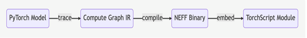 Optimum Neuron is an interface between the HuggingFace Transformers library and the AWS Neuron SDK. It provides a set of tools for model load, training, and inference for single and multiple accelerator setups of different downstream tasks. In this article, we mainly used Optimum Neuron’s export interface. To deploy the HuggingFace Transformers model on Neuron devices, the model needs to be compiled and exported to a serialized format before the inference is performed. The export interface is pre-compiled (Ahead of-time compilation (AOT)) using the Neuron compiler (Neuronx-cc), and the model is converted into a serialized and optimized TorchScript module. This is shown in the following figure.