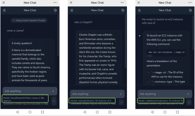 Thanks to the page customization capabilities of the Hugging Chat UI, we’ve added a model switching function, so users can switch between different models on the same EC2 Inf2 instance.