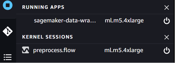 When you’re done reviewing, choose the power icon and stop the Data Wrangler resources under Running Apps and Kernel Sessions.