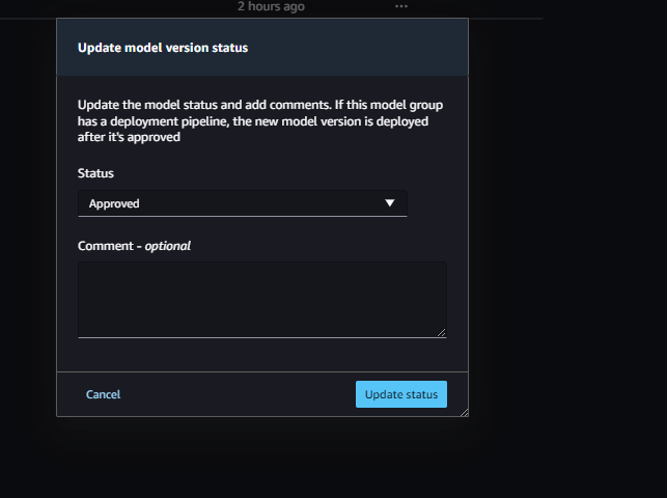 Choose Approved and choose Update status to approve the model.