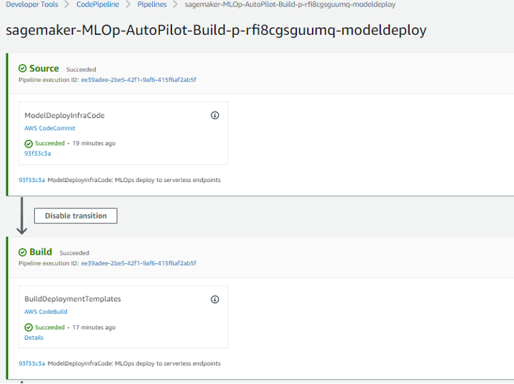 After the model status is approved, the model deploy CI/CD pipeline within CodePipeline will start.