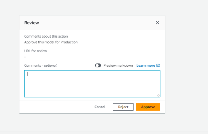 - After the model is registered, the model approver can either approve or reject the model in Studio.