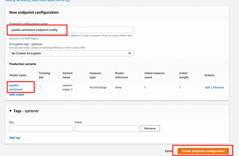 Creating an Amazon SageMaker endpoint with the PaddlePaddle model