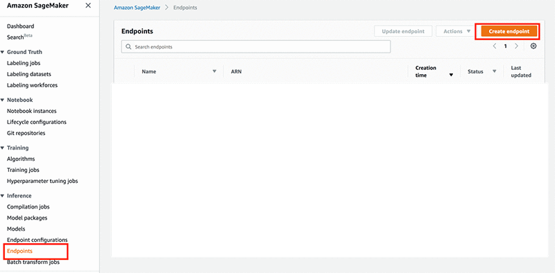 Now that the model and container artifacts are uploaded to S3 and ECR, you can create the Amazon SageMaker endpoint. Complete the following steps: