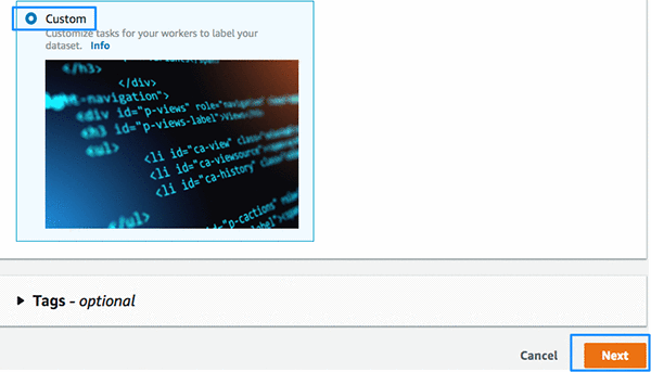 You can use the template provided at this GitHub location while launching a Ground Truth job. I’ll walk through the custom HTML template that I built. If you choose to build your own template from the source, replace the generated JavaScript and CSS URLs as appropriate.