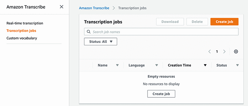 As you can see, there are some very specific brand names and custom terms. Let’s see what happens when we pass the audio sample through Amazon Transcribe as is. First, let’s sign into the AWS Console and create a new transcription job: